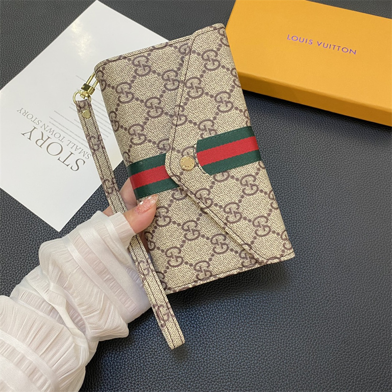 ルイヴィトン、グッチ風の全機種対応手帳型スマホケース!