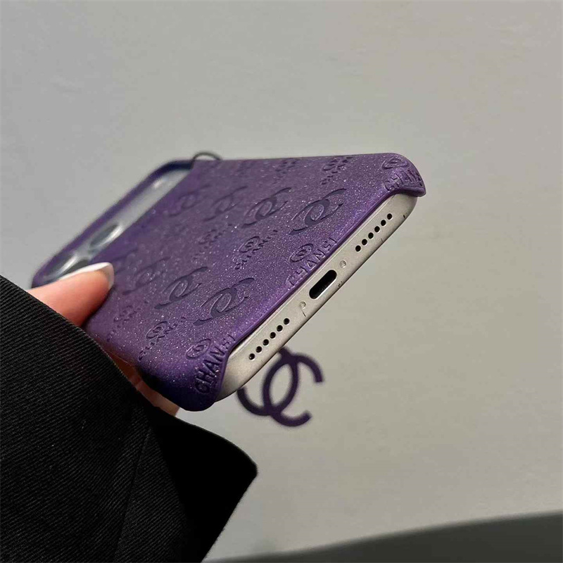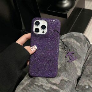 派手すぎない上品な輝きのラメ素材に、ぷっくりとしたロゴデザインを配置。手触りも良く、指紋が目立ちにくいのも嬉しいポイントです。