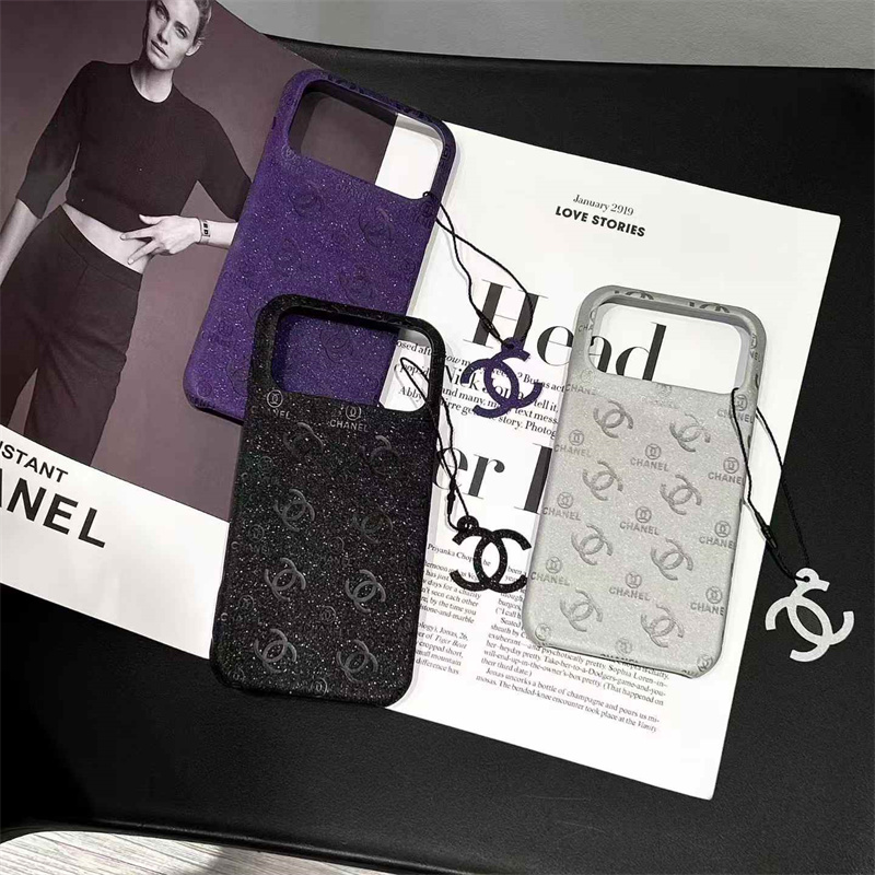 派手すぎない上品な輝きのラメ素材に、ぷっくりとしたロゴデザインを配置。手触りも良く、指紋が目立ちにくいのも嬉しいポイントです。