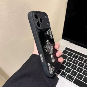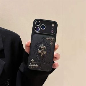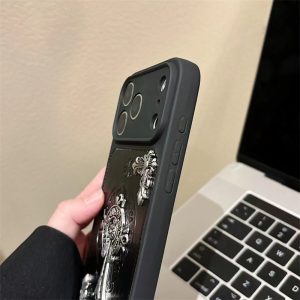 アイコニックなブランドロゴをあしらったブラックのiPhoneケース。