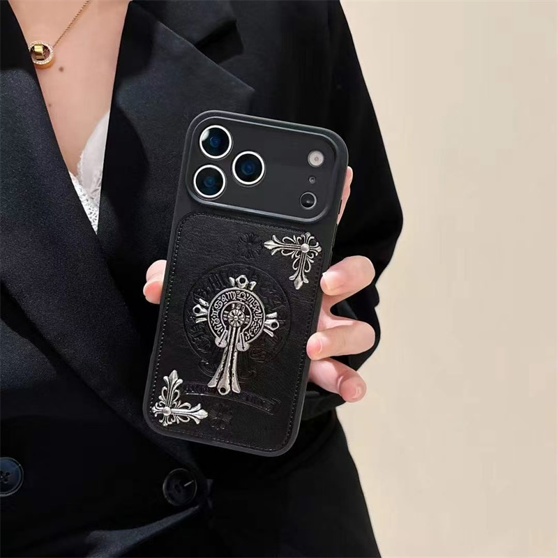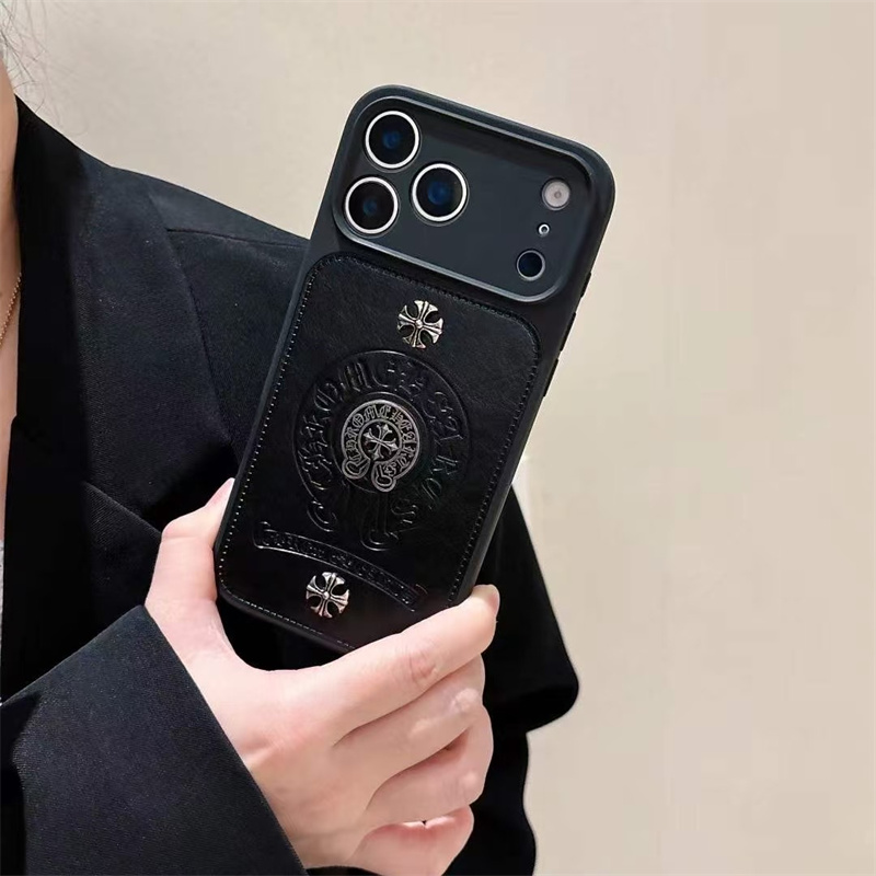 アイコニックなブランドロゴをあしらったブラックのiPhoneケース。