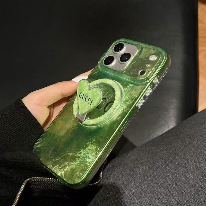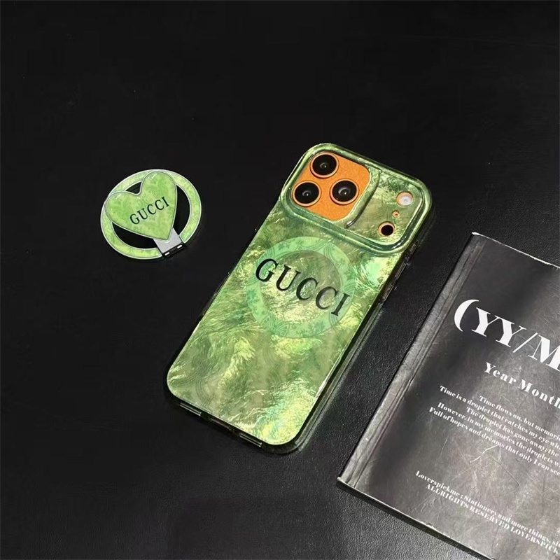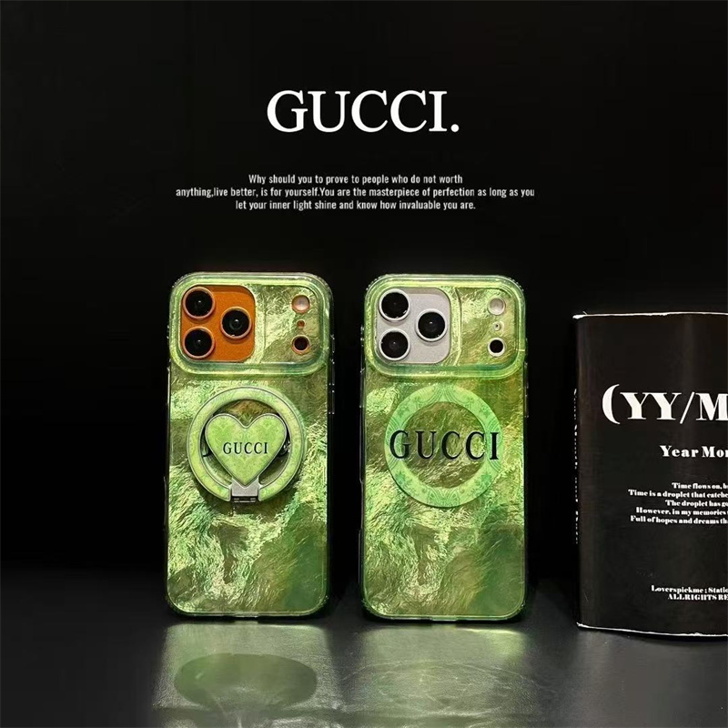 全体がツヤのあるグリーンのデザインとグッチのGGロゴで一瞬にあなたのスマホをファッションアイテムに!