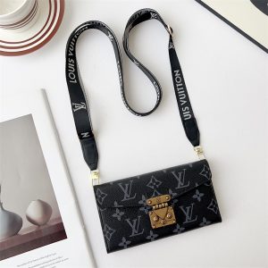 手帳型デザインはカードやお札も収納でき、ショルダーストラップも付きで、実用性と利便性も備えています!